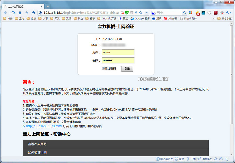 首先打開瀏覽器訪問 http://192.168.18.1 (ROS的LAN口IP)或訪問任意互聯網網站,它會自動跳轉到以下驗證畫面。(在未手工建立驗證上網驗證賬戶的情況下,可以先使用默認的admin賬戶登入,登陸后再進行后緒設定。)